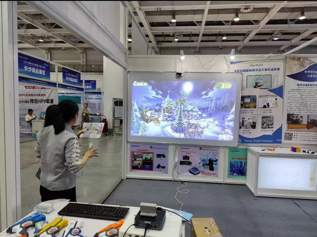 At this exhibition, Hunan Top Smart Tech Co., Ltd. showcased a series of industry-leading products. The large screen high-precision interactive device, with its excellent display effect and sensitive touch experience, brings an immersive interactive experience to the audience. After transforming the projection plane into a large screen interactive wall, there is no need to use a mouse to operate or walk back and forth between the screen and the computer. The screen can be directly operated through infrared pen or finger touch, and can be used for writing, marking, learning and other operations, which will be more convenient, fast and accurate. Therefore, whether it is classroom interaction in the education field or information dissemination in commercial exhibitions, our interactive large screen and other products have shown great potential for application.